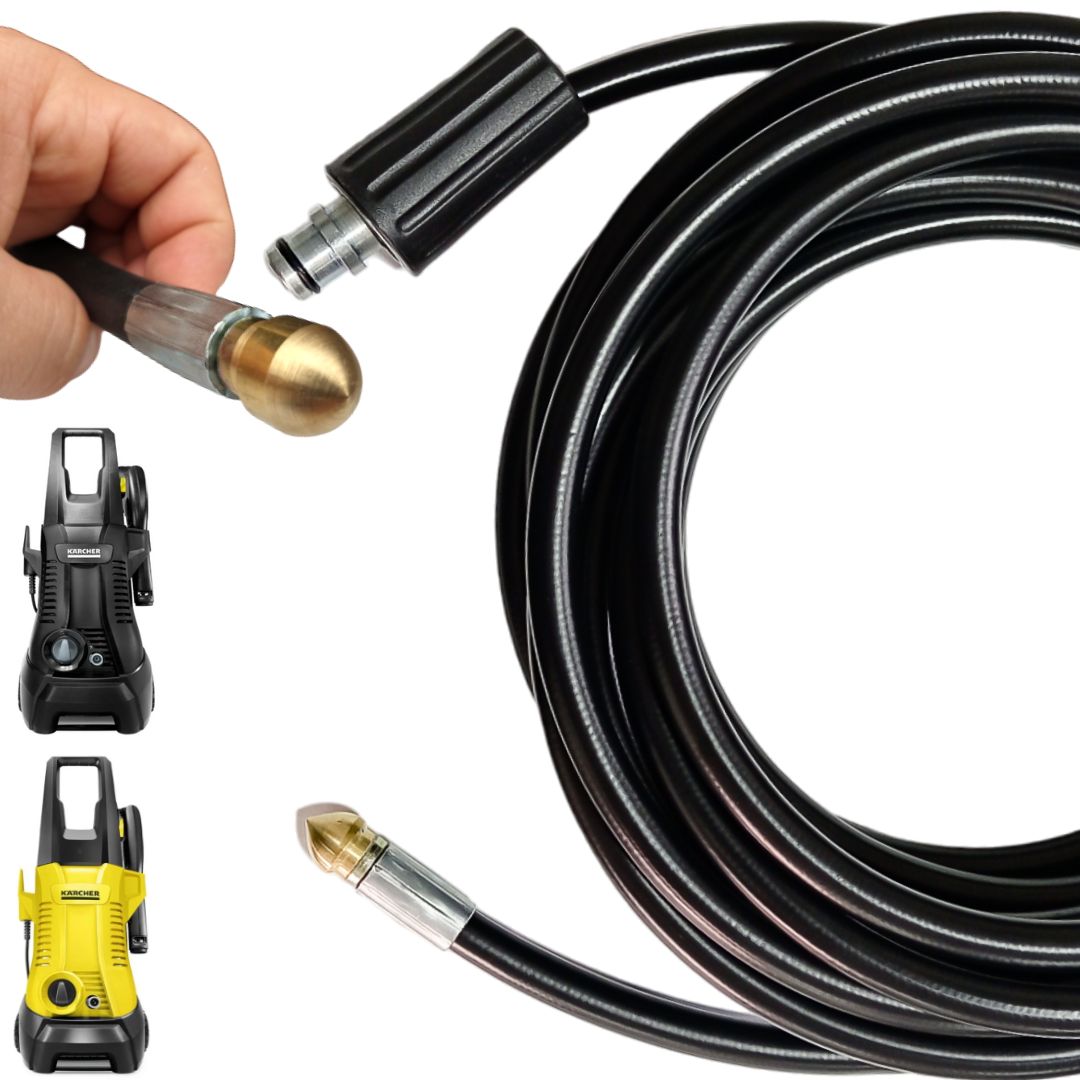 Mangueira desentupidora proporciona praticidade e facilidade para limpar e desobstruir canos e calhas. Com esse acessórios você vai potencializar ainda mais o uso da sua lavadora.
